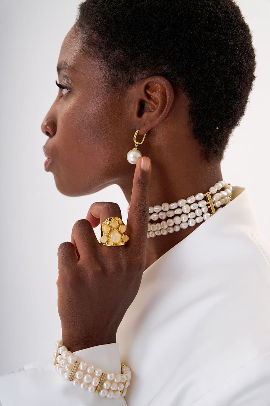Anillo abierto de ágata blanca chapado en oro 18K – LUISON | Joyería 2025 de diseño exclusivo