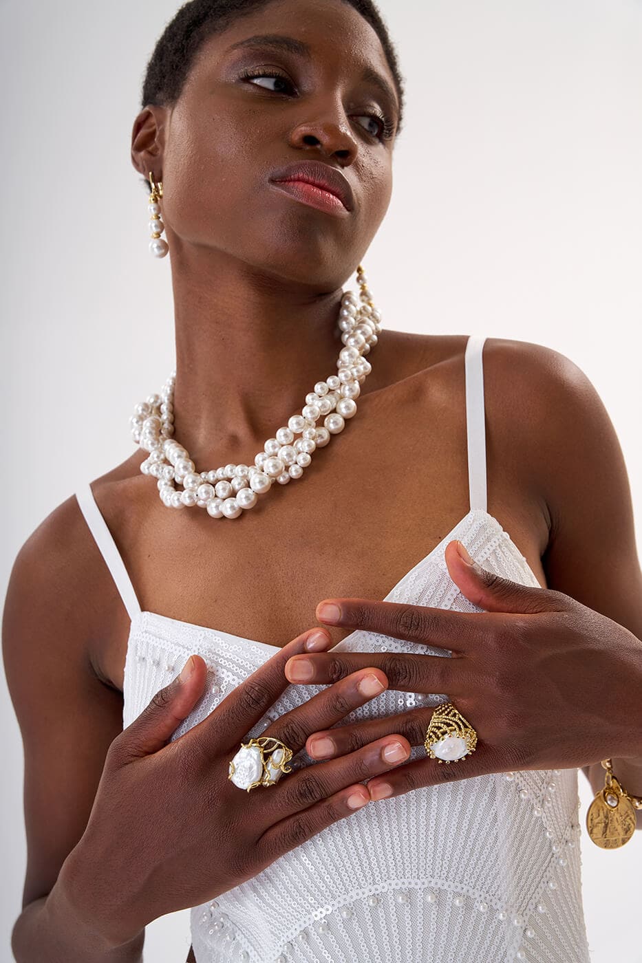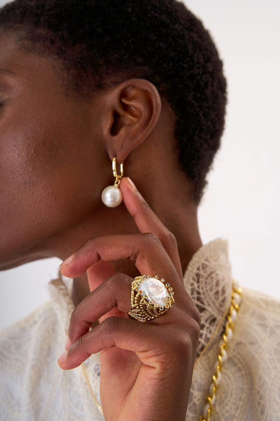 Anillo Perla Barroca Murano Gold – anillo unisex con perla barroca y brillantes de Murano