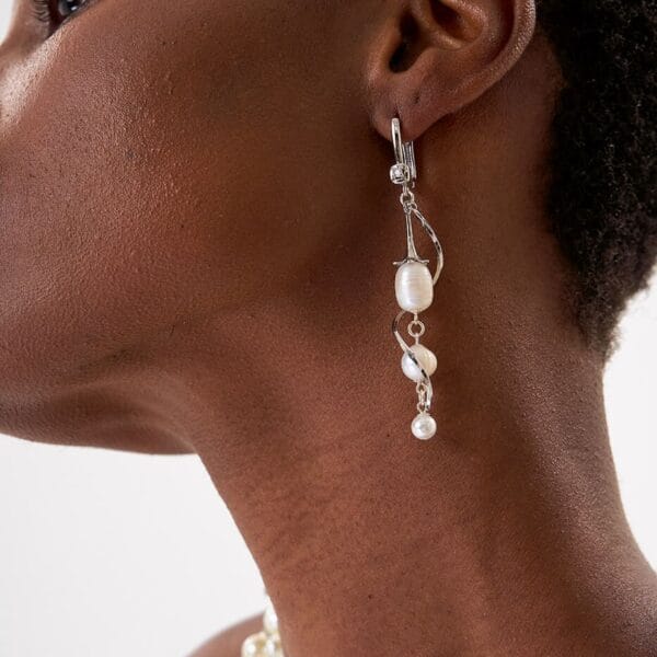 LUISON Pendientes CASCADA PLATEADA con perlas naturales y barra de plata – Diseño artesanal unisex
