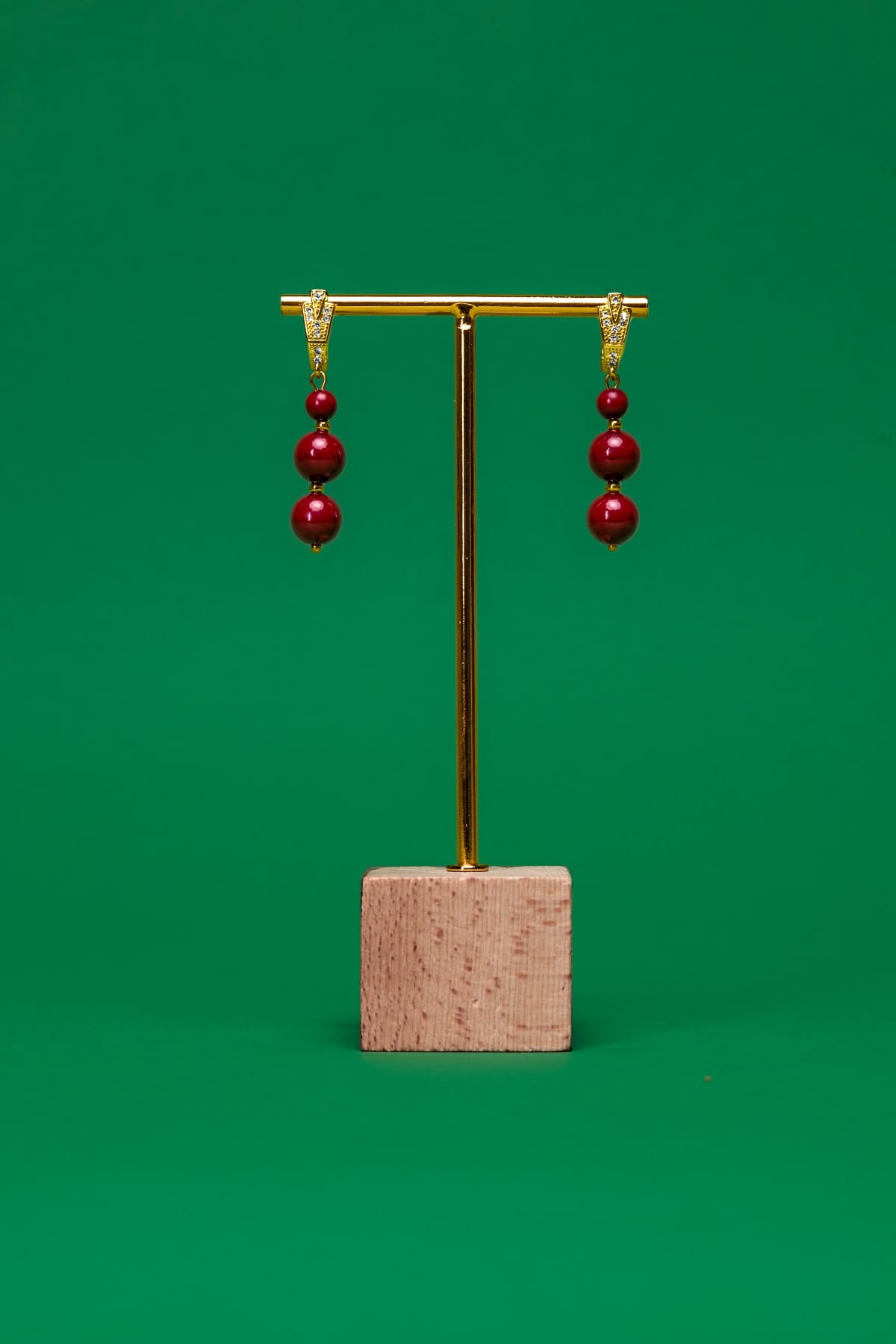 Cautivadores pendientes artesanales que destacan por su diseño vertical de tres esferas de jade rojo natural, creando una elegante cascada. Cada pieza está meticulosamente elaborada a mano, fusionando el misticismo del jade rojo con un diseño contemporáneo.