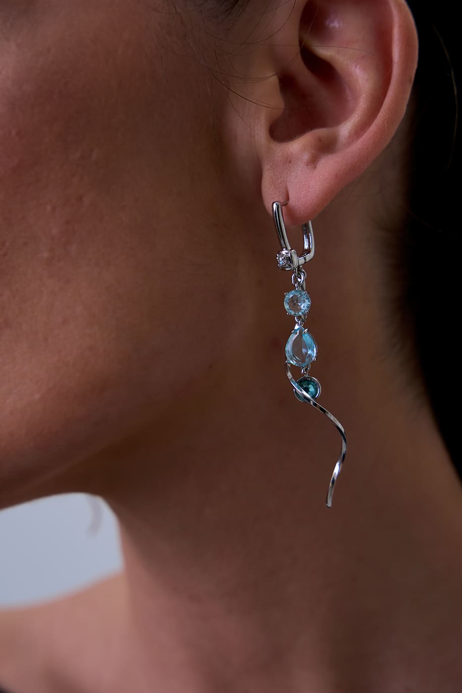 Pendientes unisex de Swarovski azul cielo y plata 925 | Joyería artesanal con circonio natural