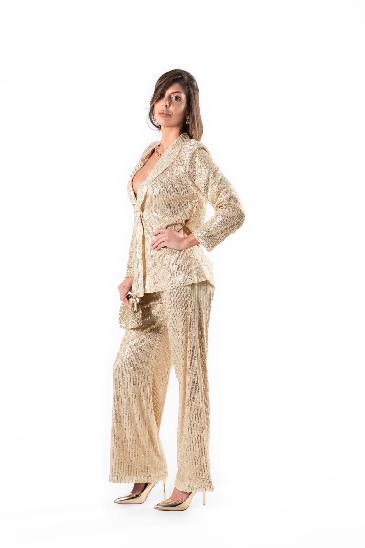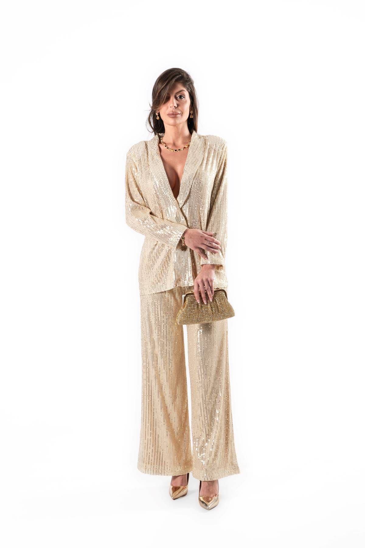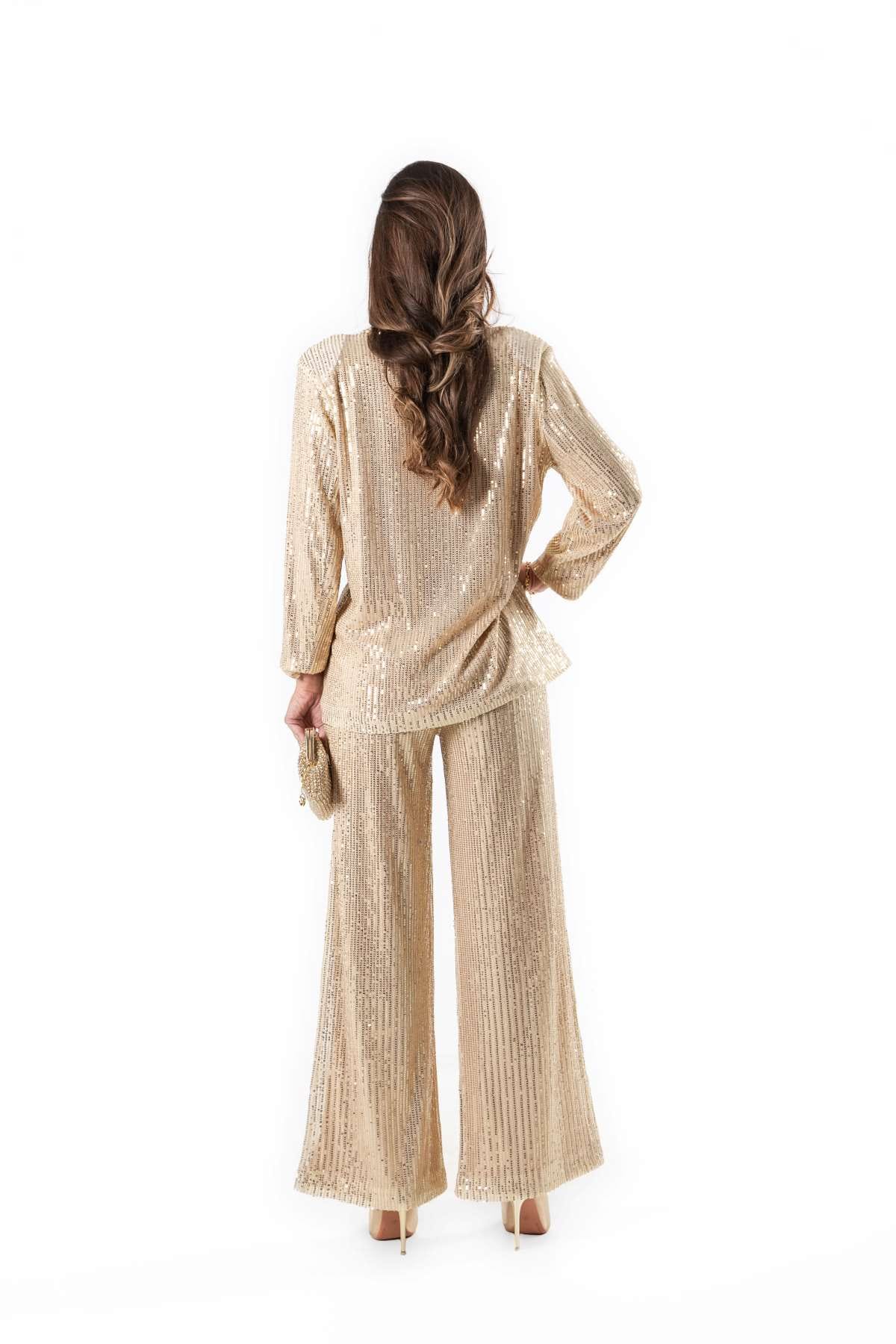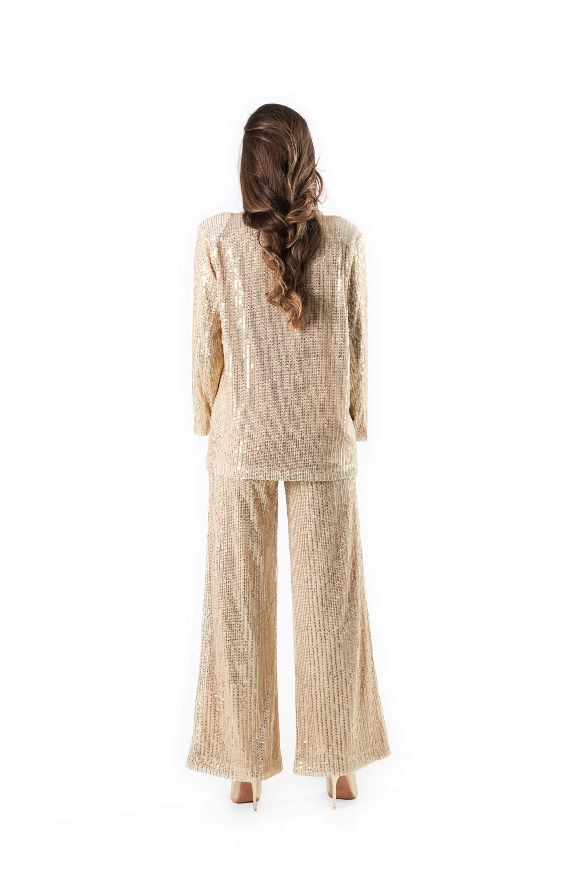 Pantalones de traje: tela de lentejuelas de alta calidad, cierre de botón y cremallera, pierna recta.