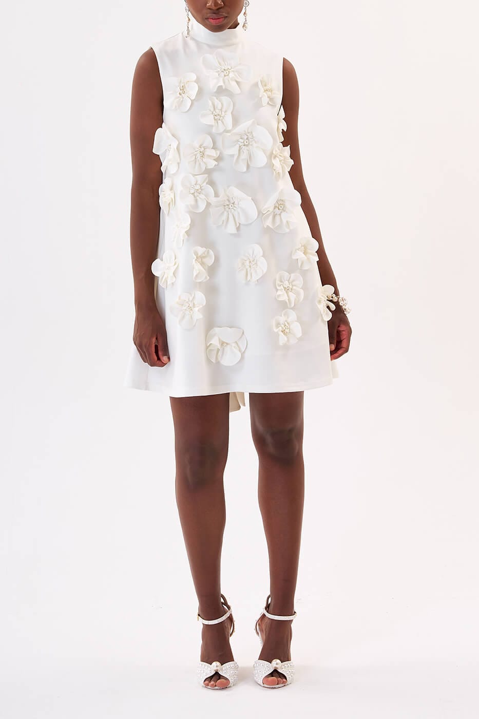 Vestido Flores Perlas – vestido corto blanco con flores y apliques de perlas
