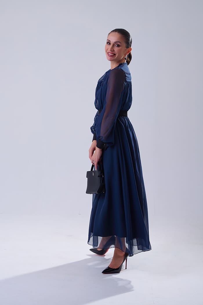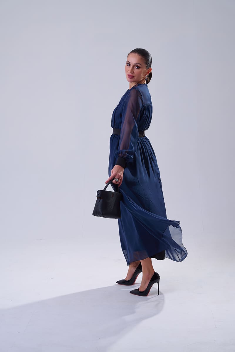Vestido Idalia Azul | Vestido largo de gasa elegante con mangas abullonadas, ideal para fiestas y noches de verano