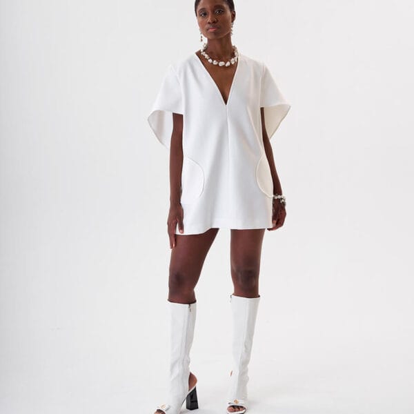 Vestido Mariposa Blanca – minivestido blanco con media manga y escote en V profundo