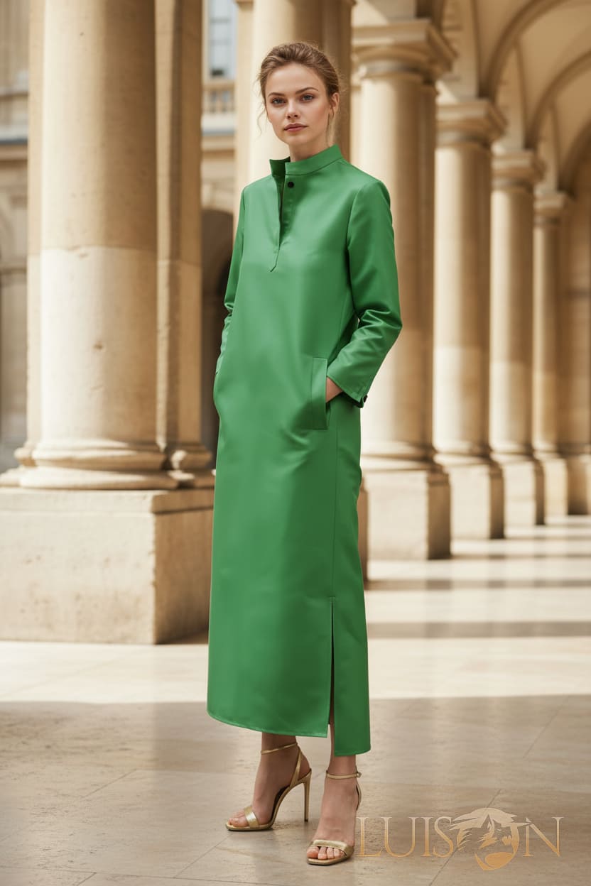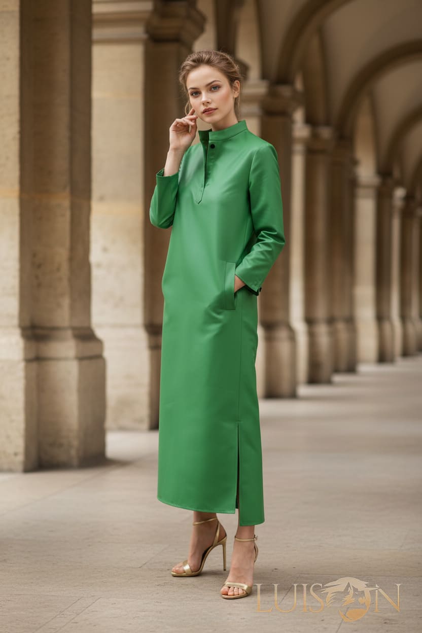 El vestido verde SANTI de LUISON destaca por su equilibrio entre elegancia y sencillez. Su tono verde profundo refleja la esencia de la moda contemporánea, aportando frescura y personalidad al estilo urbano. Fabricado en tejido cómodo y suave, su corte holgado estiliza la silueta manteniendo un aire relajado. Perfecto para días de trabajo, reuniones o eventos informales con un toque de distinción.